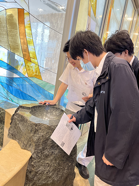 The second station of the pilgrimage was the Church of the Annunciation in Tsuen Wan where students could have exposure to the modern eclectic architectural design and learn to appreciate it. The students found the church awe-inspiring and beautiful. Also, with the sharing of the pious docent ministers, S.3 students came to know more about Mary.