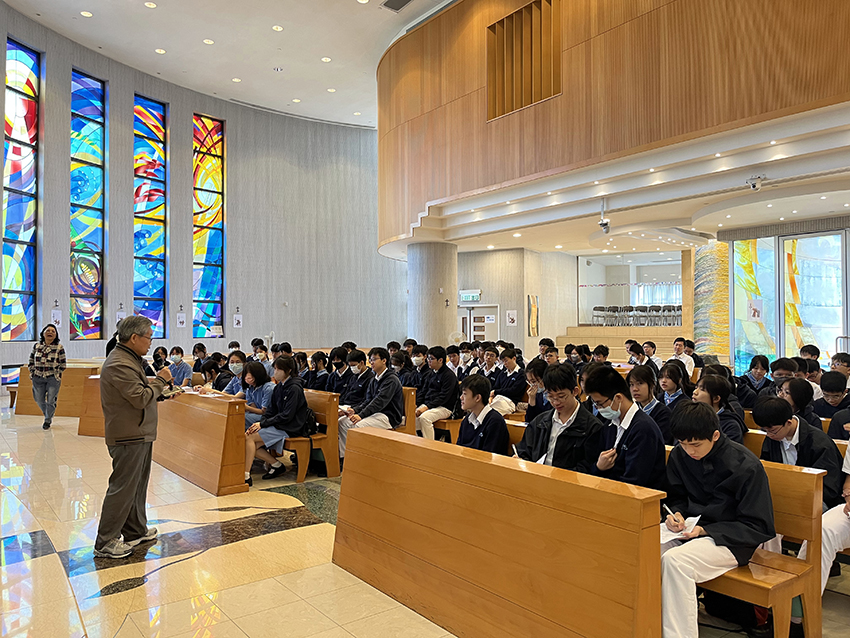 A pilgrimage was arranged on 16 April, 2025 (Life-wide Learning Day) for S.3 students as an extension of the RE syllabus this year. They first visited St. Jerome’s Parish in Tin Shui Wai which was founded by Fr. Vincent F. Corbelli, MM in 1993. Parishioners who had worked with Maryknoll Fathers shared with young Maryknollers about the evangelization style of Maryknoll Fathers. Many students expressed that they were most impressed by the zeal, vision and courage of Maryknoll Fathers who dared to establish a new venture out of nothing.