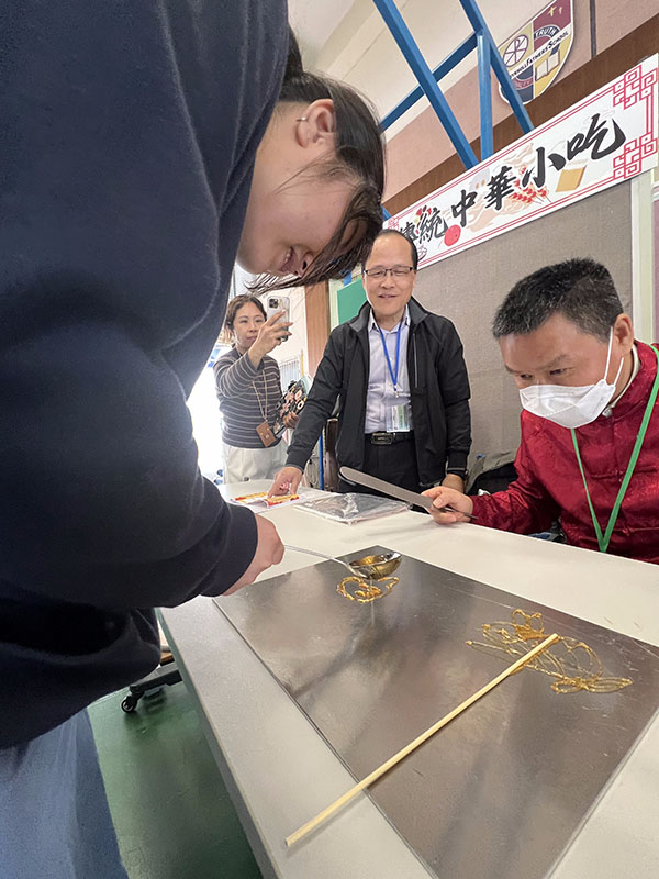 文化攤位涵蓋漢服試穿、舞獅體驗、編鐘敲擊等豐富體驗項目。同學們穿梭其中,親身體驗傳統消閒活動,感受其文史底蘊。場地內展板林立,介紹著傳統意趣背後的歷史文化,同時學科問答環節吸引眾多同學參與,大家積極思考,在遊戲與體驗式活動中提升學科興趣,深化學科知識。