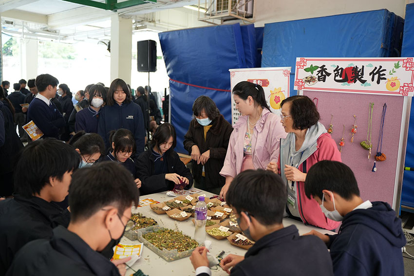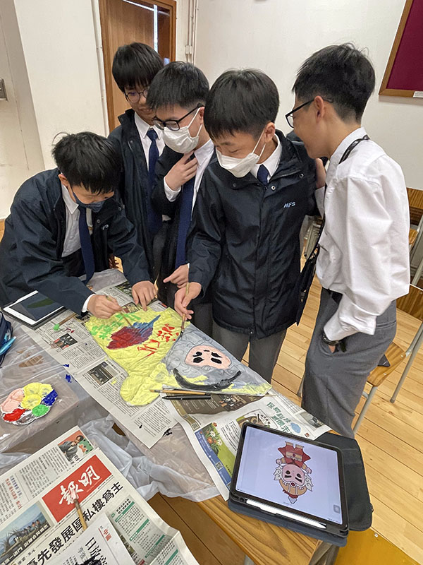 手繪風箏紮作工作坊暨頒獎典禮是文化周的高潮。中二全級同學分組,結合歷史人物構思繪圖。紮作師傅傳授傳統紮作歷史及文化,以及放風箏的技巧後,同學們運用數學、綜合科學知識,合力製作風箏。比賽當日,禮堂內歡聲笑語,顏彩處處,同學們在實踐中深化對歷史人物的瞭解,更學會應用數學「對稱」、綜合科學科「力和運動」課題所學,化為亮麗的藝術作品。