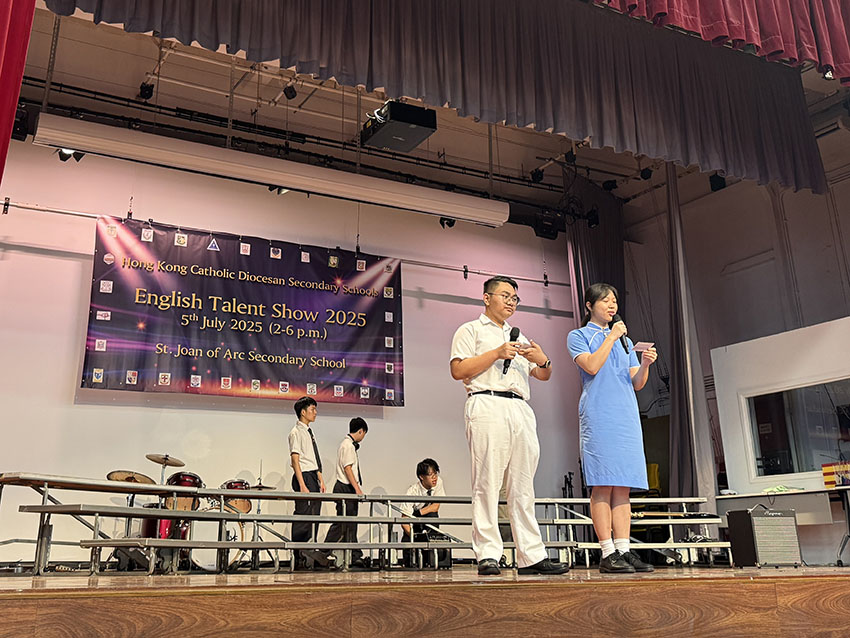 The annual Talent Show, organised by the English Language Committee from the Hong Kong Catholic Diocesan Secondary Schools, was held on Saturday, 5 July, 2025, at St. Joan of Arc Secondary School. The competition is a wonderful platform for students to showcase their talents and boost their confidence in using English.