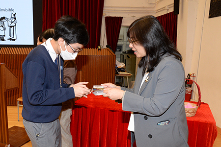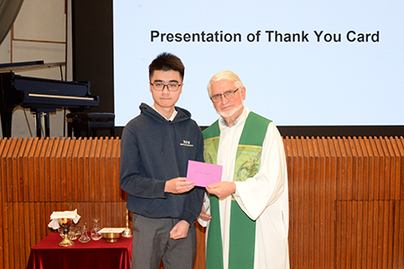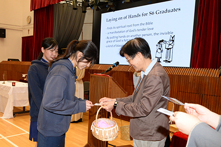 The S6 Graduation Mass was held on 3 March, 2025 by Fr. Grégoire Vignola, SME, the Assistant Parish Priest of St. Francis of Assisi Church. Fr. Grégoire encouraged the S.6 graduates by quoting the two Mass readings. After the enlightening homily, he blessed each of the S.6 graduates by laying hands on their foreheads. Each graduate received a crucifix from the Supervisor as a souvenir and sign of God’s love and care. To help the graduates remember the Maryknoll spirit, each S6 student collected a Marian bookmark from the Principal.