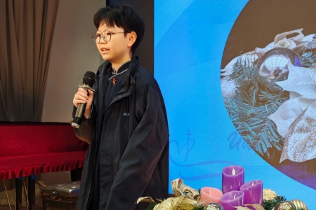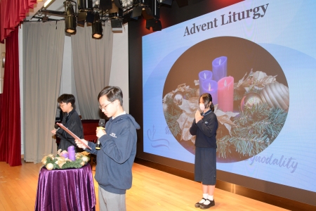 The whole school community was pleased to have Natalie Cheung from Form 1A to share how she persevered in her faith journey. Although being young, Natalie would like to identify herself with Jesus and imitate His virtues, she has been striving to practise forgiveness in her daily life. After the sharing, she lit the second candle of the Advent wreath, a symbol of repentance, on behalf of the whole MFS community.