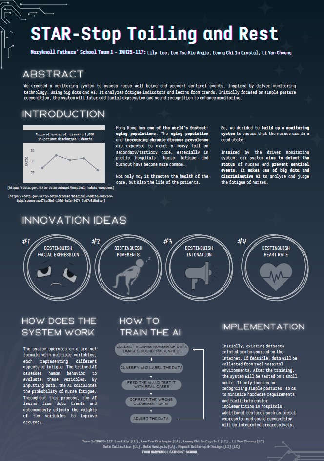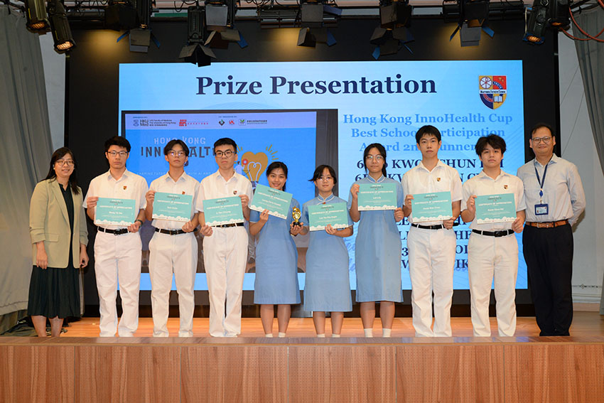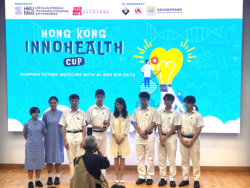 Our students joined the “2025 Hong Kong InnoHealth Cup” organised by the Li Ka Shing Faculty of Medicine of The University of Hong Kong. After extensive research of big data from the Hong Kong government, the two talented teams designed their posters for the competitions. They presented their findings, along with the poster at William M.W. Mong Block on 12 April 2025. To our delight, the students were the 2nd Runner-Up for the “Best School Participation Award.” Their achievement highlights their creativity, scientific rigor and talent in seeking solutions which required the use of big data and artificial intelligence in solving the problems of public health in Hong Kong.